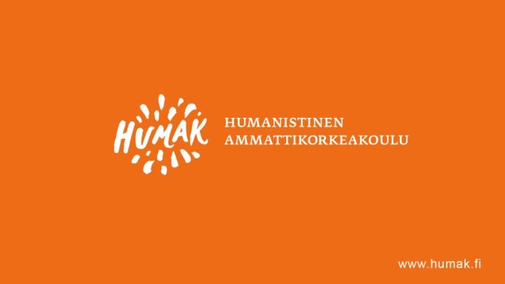 HAKUKOHTEET 2020 • Bachelor in Adventure and Outdoor Education (NURMIJÄRVI) Huom. Hakuaika tammikuussa! • • • Kulttuurituottaja (TURKU ja KAUNIAINEN) Kulttuurituottaja (HELSINKI: digikampus) Kulttuurituottaja (ylempi AMK, HELSINKI, syksyn hakuaika) • Yhteisöpedagogi (NURMIJÄRVI, JYVÄSKYLÄ, KUOPIO, TURKU) • Yhteisöpedagogi (HELSINKI: digikampus, 60), • (Työyhteisön kehittäjä, HELSINKI, 25) Yhteisöpedagogi (ylempi AMK, HELSINKI) • • • Tulkki, viittomakielen tulkkaus (HELSINKI) Tulkki, puhevammaisten tulkkaus ja kommunikaatio-ohjaus (KUOPIO) Tulkki (ylempi AMK, HELSINKI) Keskustele kanssamme chatissa tai viestitä hakijapalvelut@humak. fi