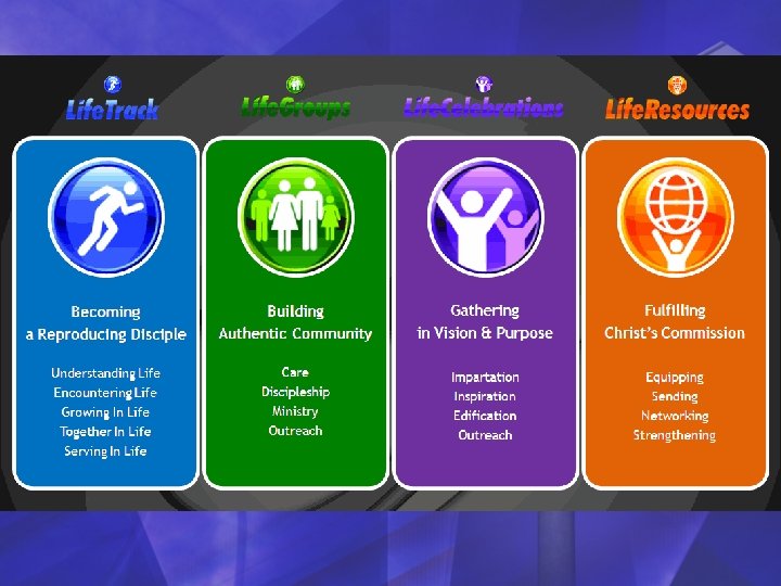2. Life Groups The Life Groups are designed to foster deeper discipleship and authentic community among the believers. 3. Life Celebrations are designed to celebrate the Lord and the fruit of the other tracks in a corporate context.