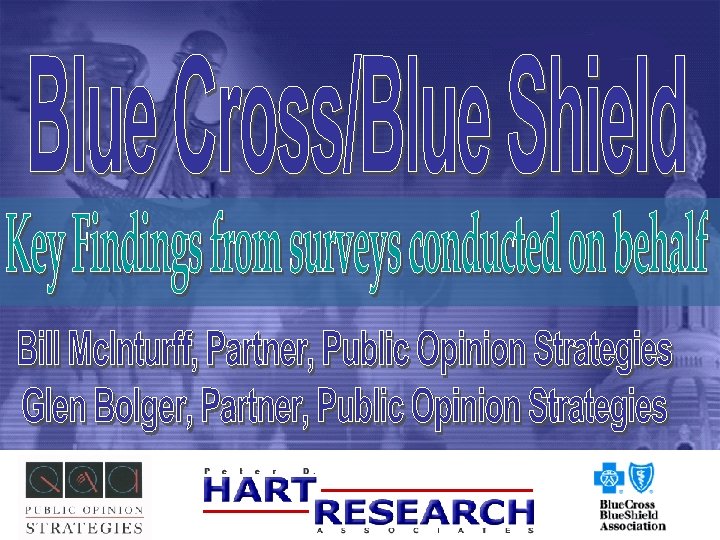 Key findings are based on recently conducted surveys: (cont. ) Ø An Internet Survey of 500 Physicians An internet survey of 500 physicians conducted November 3 -4, 2004. The margin of error on this survey is +4. 4%. This survey was conducted by Cooper Research in conjunction with Blue Cross Blue Shield Association. The physicians survey used a fax/internet methodology to recruit and interview the respondents. The sampling frame was a list of over 342, 000 practicing U. S. physicians in The Little Blue Book Physician Master File. Two systematic random samples of 10, 000 physicians each were drawn from the total file. Only one physician from each office was eligible to participate. Physicians were invited to take part in the survey via broadcast faxes which were sent out on two successive waves on November 3 rd and 4 th. The invitation asked the physician to participate in a major non-partisan survey on critical election issues related to health care. Each physician was given the survey URL as well as and a unique login code to access the site. If a physician encountered problems in either accessing or completing the survey he/she could receive assistance via a toll free help line. Hourly reports of completed interviews by years in practice, geography, and medical specialty were monitored to ensure the interviews were well balanced. Responses were cut off when 501 interviews were completed. 3