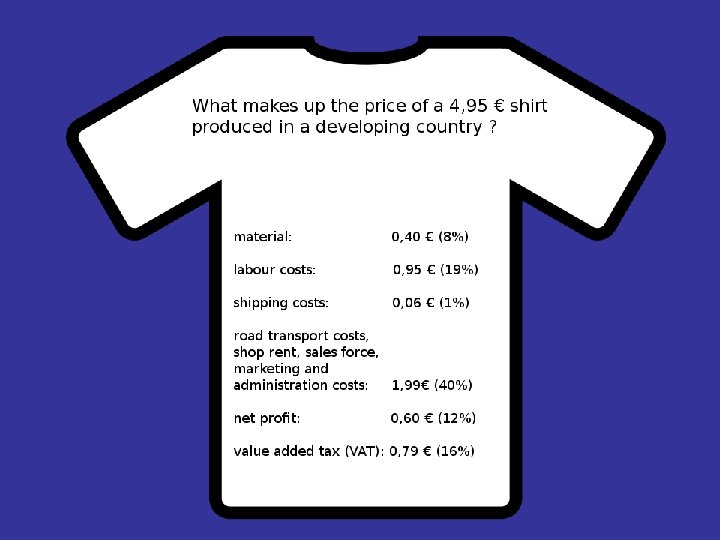 Transportation: the further it goes, the higher the cost • Water: cheapest if available and the product is traveling a long distance. • Rail: cheapest by land, if available and traveling long distances. • Truck: easy to load and unload, so useful if shorter distances. • Air: most expensive, but used sometimes if time is of the essence.