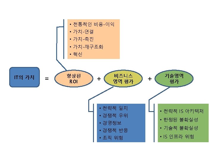 Value Analysis • An alternative to C/B analysis in the evaluation of IS projects • Projects which are attractive but suffer in that their benefits are often heavily intangible • Ex) DSS, “What is the exact dollar value of improved decision making? ” • The value of the benefits would be descriptive • The dollar value of these intangible is a matter of willing to pay in monetary terms • Taking value analysis one step more, to quantify these intangible benefits in terms of value (not in terms of dollars) multiple criteria analysis