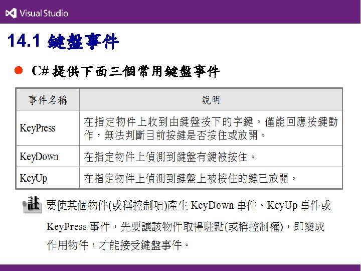 Key Press 14 1 2 Key Down Key Slides: 32 Download presentation Key. Press 事件語法 14. 1. 2 Key. Down 和 Key. Up 事件 l Key. Down 與 Key. Up 事件語法: