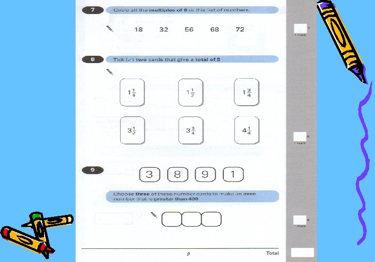 Maths This test has three papers: ü Paper 1– 45 minutes ü Paper 2 – 45 minutes ü Mental Arithmetic – 5, 10 or 15 seconds per question Changes this year: paper A and B are non- calculator papers ü Some of the questions require the children to show their processing skills ü Many of the questions require the children to show their skill in using and applying maths in a variety of situations. ü Example of mental maths - 2014 paper ü