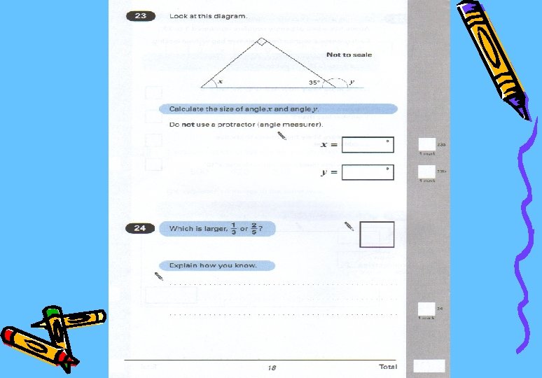 Different areas of Maths • Number work: fractions, decimals percentage, division and multiplication. • Shapes and Solids: area and perimeter, 2 D and 3 D shapes, angles. • Measurements: co-ordinates, time, reading scales, converting units of measure • Handling Data: graph work, mean, mode median and range, probability.