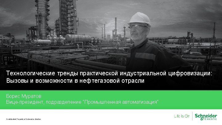 Key trends put pressure on OPEX and CAPEX decisions in the Oil&Gas Industry Keeping employees and assets safe in a high risk industry Confidential Property of Schneider Electric | Page 2 Addressing industry trends like the ageing workforce and price volatility Adopting new technologies and prioritizing investments Meeting sustainability compliance and social license to operate