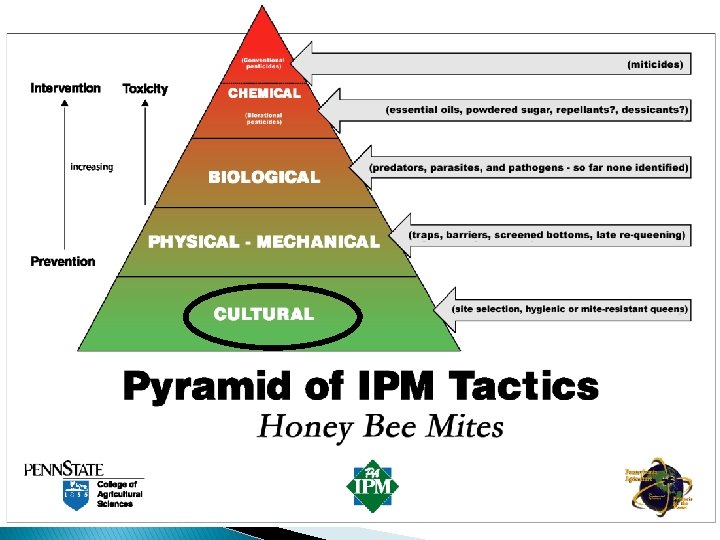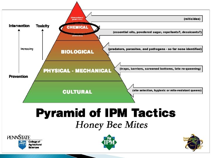 Treatment Control Options Treatment Options Treat Hard Chemical Apivar Soft Chemical or Organic IPM Don’t Treat Cultural or Mechanical + Oxalic + hopguard + sanitation site Ventilation Drone trap Brood interupt