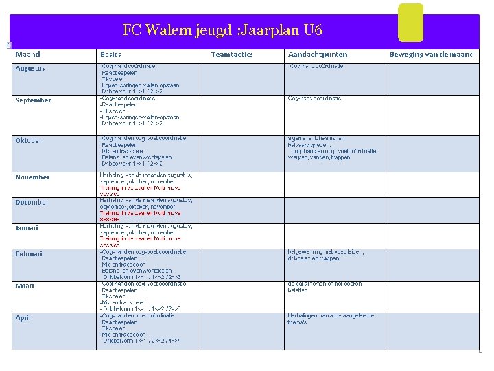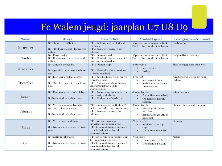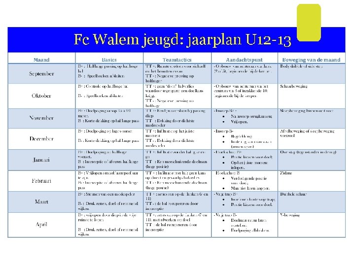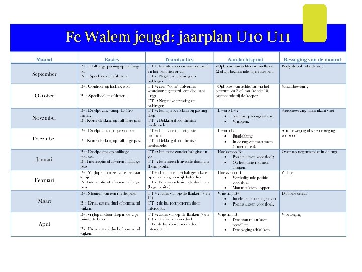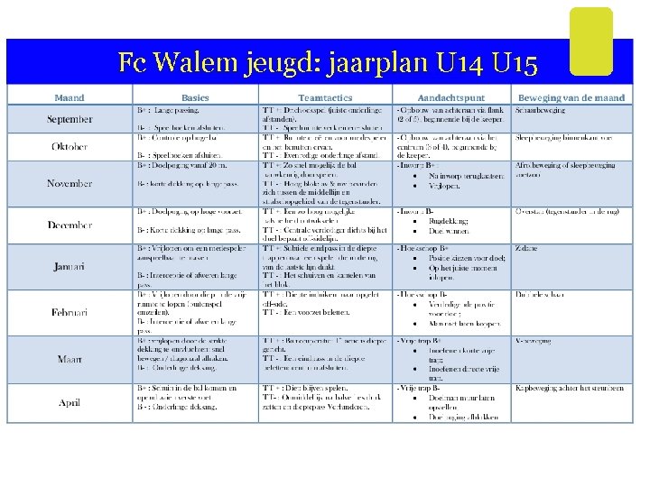 Fc Walem jeugd: Jaarplan U 16 U 17