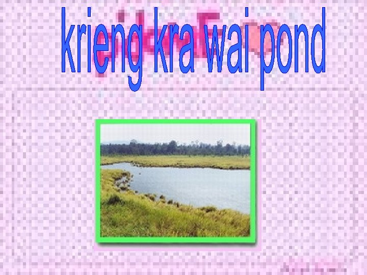 Krieng Kra wia Pond is a large pond, near the waterfall, which has many kinds of bird such as lesser whistling duck, water rail, common moorhen, and a kind of Carpitonidae etc. In the field around the pond have many birds such as coucal and bee eater etc. And in the forest around the pond also have birds such as woodpecker, barbet and great pied hornbill. So that makes this area interesting for birders.