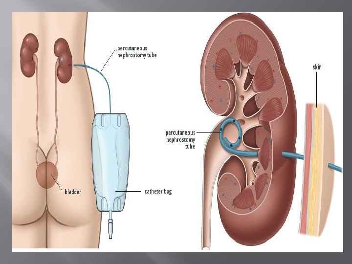 Indications for a Nephrostomy tube Indications for Nephrostomy: � Removal of renal calculi � Decompression of renal system following obstruction � Trauma distal to kidney causing urine to leak � Complications of renal transplant