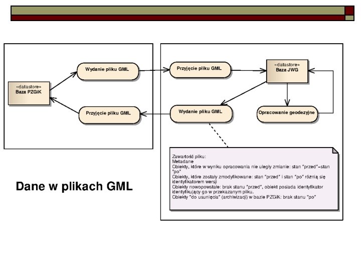 Projekt rozporządzenia Ministra Administracji i Cyfryzacji w sprawie organizacji i trybu prowadzenia państwowego zasobu geodezyjnego i kartograficznego: o o o 3. System PZGi. K stanowi uporządkowany i całościowy układ, zintegrowany z systemami teleinformatycznymi wykorzystywanymi do prowadzenia baz danych, o których mowa w art. 4 ust. 1 a i 1 b, art. 7 a pkt 14 lit. b i pkt 16 a oraz art. 24 b ust. 1 pkt 1 ustawy, oraz z systemem do elektronicznego zarządzania dokumentacją, o którym mowa w przepisach wydanych na podstawie art. 6 ust. 2 b ustawy z dnia 14 lipca 1983 r. o narodowym zasobie archiwalnym i archiwach (Dz. U. z 2011 r. Nr 123, poz. 698 oraz Nr 171, poz. 1016), obejmujący: 1) bazy systemu PZGi. K […]; 2) kopie bezpieczeństwa baz […]; 3) urządzenia służące do przyjmowania, wizualizacji, udostępniania i teletransmisji danych i materiałów zasobu w postaci dokumentów elektronicznych. 4. Przetwarzanie danych osobowych w systemie PZGi. K odbywa się zgodnie z zasadami określonymi w przepisach wydanych na podstawie art. 39 a ustawy z dnia 29 sierpnia 1997 r. o ochronie danych osobowych […]