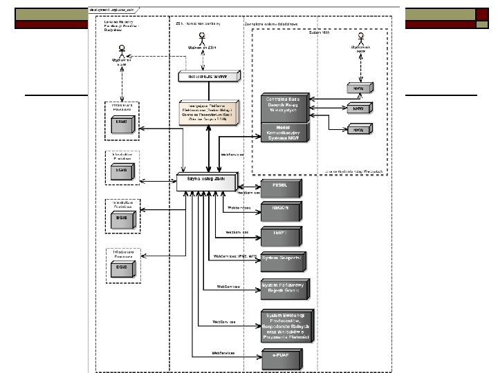 Prawo o Ustawa z dnia 17 lutego 2005 r. o informatyzacji działalności podmiotów realizujących zadania publiczne n Rozporządzenie z dnia 12 kwietnia 2012 r. w sprawie Krajowych Ram Interoperacyjności, minimalnych wymagań dla rejestrów publicznych i wymiany informacji w postaci elektronicznej oraz minimalnych wymagań dla systemów teleinformatycznych n Rozporządzenie z dnia 21 kwietnia 2011 r. w sprawie szczegółowych warunków organizacyjnych i technicznych, które powinien spełniać system teleinformatyczny służący do identyfikacji użytkowników n Rozporządzenie z dnia 19 października 2005 r. w sprawie testów akceptacyjnych oraz badania oprogramowania interfejsowego i weryfikacji tego badania