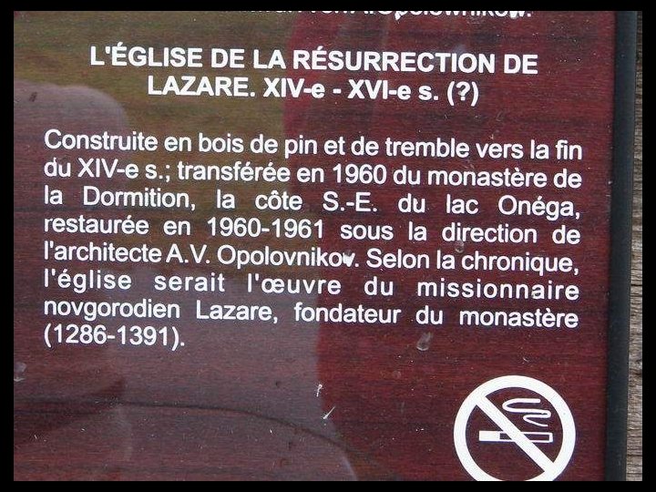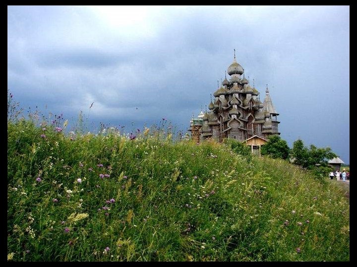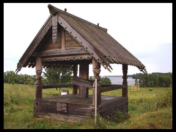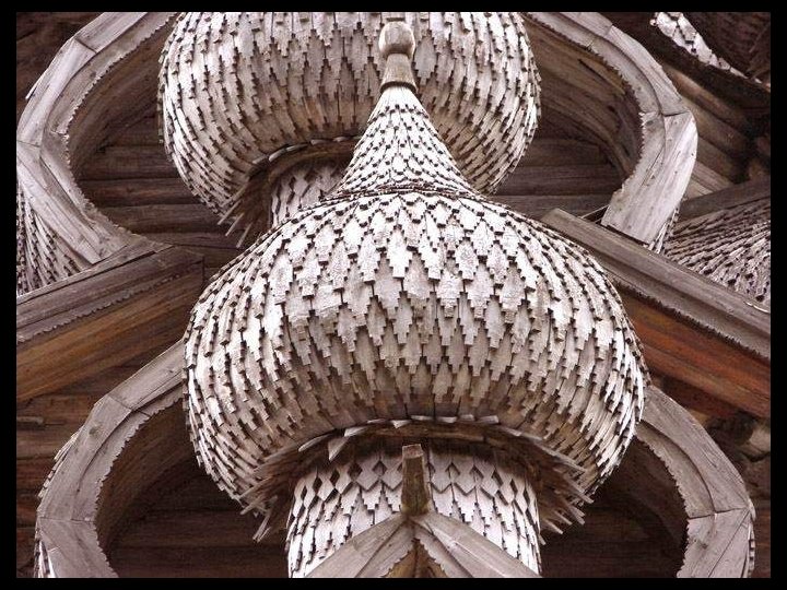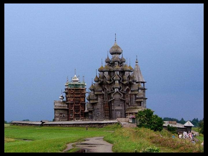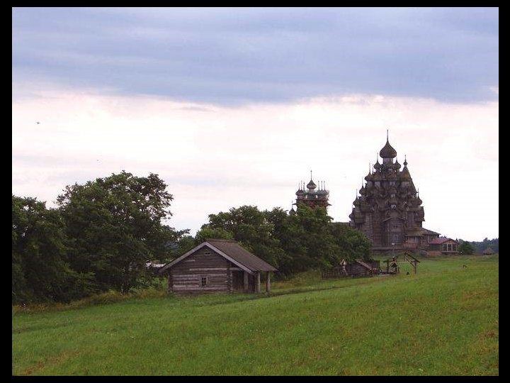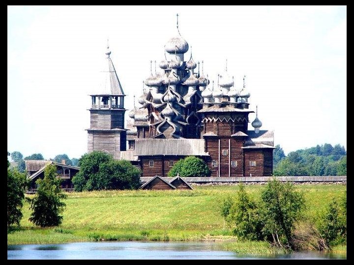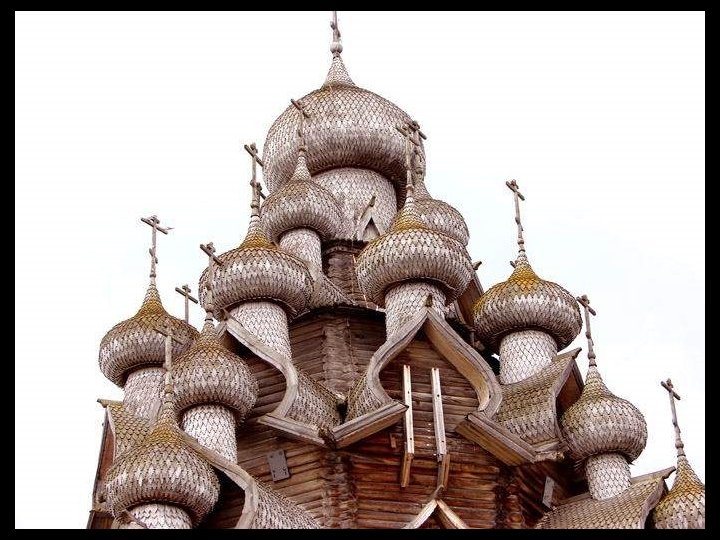 Notre escale d’aujourd’hui est Kiji (en russe : Кижи). C’est une île à l’extréme nord du lac Onega dans la république de Carélie. Longue de 7 km et large de 500 m. Elle est entourée d'autres îles et îlots (environ 5 000) dont certains ne mesurent pas plus de 2 mètres de diamètre et d’autres ont jusqu'à 35 km de longueur. Dès sa conquête sur les finlandais, l’église orthodoxe y a construit (en 1714) un enclos paroissial (pogost) constitué de deux églises et un clocher octogonal entourés d'un enclos, le tout édifié en bois. Le joyau de cet ensemble unique est l'église de la Transfiguration, ouvrage de charpente coiffé de 22 coupoles argentées formant une sorte de pyramide. L'église de l'Intercession de la Vierge, surmontée de 9 coupoles a été édifiée seulement en 1764. Ces deux édifices entièrement en bois, illustrent la maîtrise des charpentiers de l’époque, ils n’ont utilisé aucun clou ni vis ou pièce métallique. Un musée à ciel ouvert de l'architecture en bois a été fondé par les autorités soviétiques en 1960 et des constructions provenant de Carélie et relevant de cette technique ont été rassemblés sur le site, c’est le cas de la chapelle Saint-Lazare datant du XIVe siècle ( la plus ancienne de Russie, provenant du monastère de Mouromski ). Un moulin à vent ( aussi le plus vieux de Russie) et des maisons également en bois se trouvent à proximité. Le caractère exceptionnel de cet ensemble monumental lui a valu d'être inscrit au patrimoine mondial de l’UNESCO en 1990.