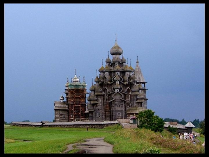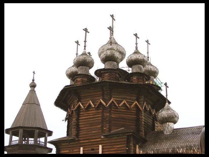 Notre escale d’aujourd’hui est Kiji (en russe : Кижи). C’est une île à l’extréme nord du lac Onega dans la république de Carélie. Longue de 7 km et large de 500 m. Elle est entourée d'autres îles et îlots (environ 5 000) dont certains ne mesurent pas plus de 2 mètres de diamètre et d’autres ont jusqu'à 35 km de longueur. Dès sa conquête sur les finlandais, l’église orthodoxe y a construit (en 1714) un enclos paroissial (pogost) constitué de deux églises et un clocher octogonal entourés d'un enclos, le tout édifié en bois. Le joyau de cet ensemble unique est l'église de la Transfiguration, ouvrage de charpente coiffé de 22 coupoles argentées formant une sorte de pyramide. L'église de l'Intercession de la Vierge, surmontée de 9 coupoles a été édifiée seulement en 1764. Ces deux édifices entièrement en bois, illustrent la maîtrise des charpentiers de l’époque, ils n’ont utilisé aucun clou ni vis ou pièce métallique. Un musée à ciel ouvert de l'architecture en bois a été fondé par les autorités soviétiques en 1960 et des constructions provenant de Carélie et relevant de cette technique ont été rassemblés sur le site, c’est le cas de la chapelle Saint-Lazare datant du XIVe siècle ( la plus ancienne de Russie, provenant du monastère de Mouromski ). Un moulin à vent ( aussi le plus vieux de Russie) et des maisons également en bois se trouvent à proximité. Le caractère exceptionnel de cet ensemble monumental lui a valu d'être inscrit au patrimoine mondial de l’UNESCO en 1990.