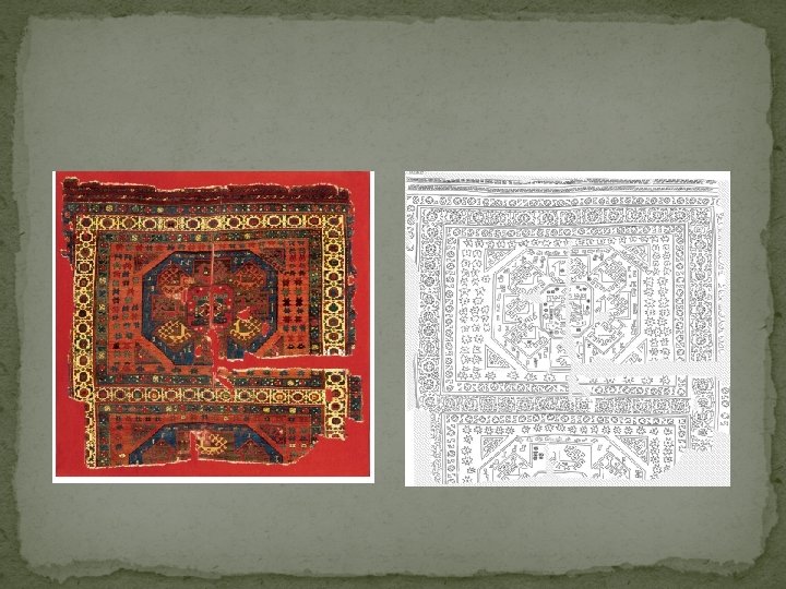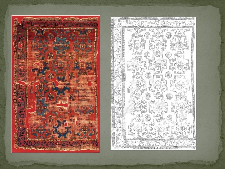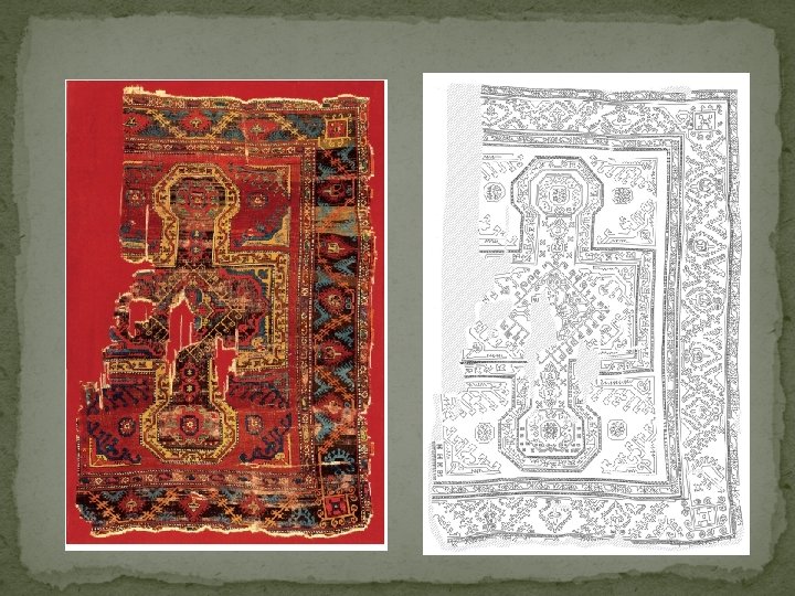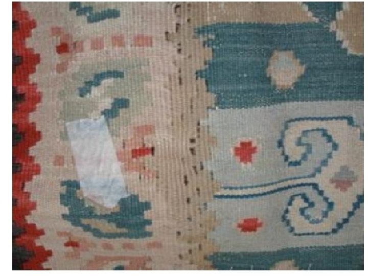 Restitüsyon Teknikleri � Tekstil eseri mevcut hali ile gösterilerek, mevcut bulunan eksiklikler ve hasarlar düzeltilmez ve boş bırakılır. � Hasarlı ve eksik bölge kompozisyon özelliklerine göre tamamlanarak çizilir ve alanda yer alması gereken motifler kontur şeklinde çizilerek bırakılır. � Hasarlı ve eksik kısımları tamamlanan eser orijinal renklerinden ayırt edilecek şekilde daha açık tonda boyanarak böylece orijinalinden ayırt edilir