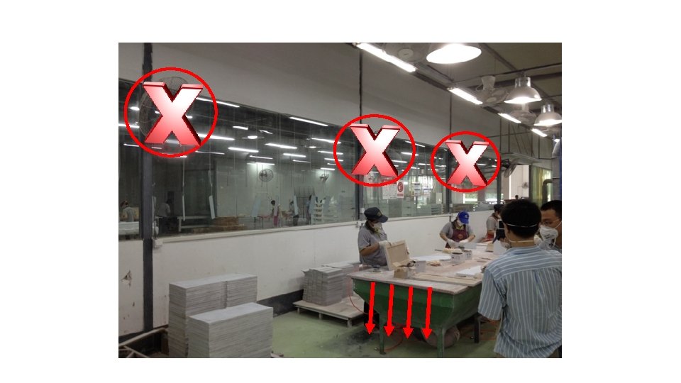 Thông gió: • Thông gió nói chung: Bụi Quạt hút Quạt thổi khí Nguồn: Thông gió trong công nghiệp, Trung tâm Chăm sóc Sức khoẻ và An toàn Lao động Canada (CCOHS) http: //www. ccohs. ca/oshanswers/prevention/ventilation/