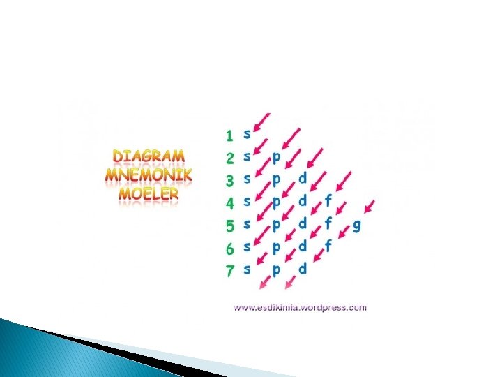 � Bentuk orbital biasanya dinyatakan dgn s, p, d, f, g, dst. . � Kulit M, maka nilai n = 3 dan l = 0, 1, dan 2 karena mempunyai subkulit s, p, dan d. � Kulit N, maka nilai n = 4 dan l = 0, 1, 2, dan 3 karena mempunyai subkulit s, p, d, dan f. � Jadi nilai bilangan kuantum azimut tidak mungkin sama atau lebih besar dari bilangan kuantum utamanya. Maksimal nilai l = n – 1