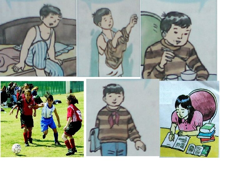Get up Play soccer Get dressed Have breakfast Walk to school Do home work
