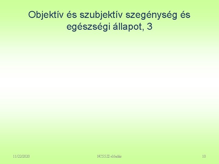 Objektív és szubjektív szegénység és egészségi állapot, 3 11/22/2020 NCSSZI előadás 10
