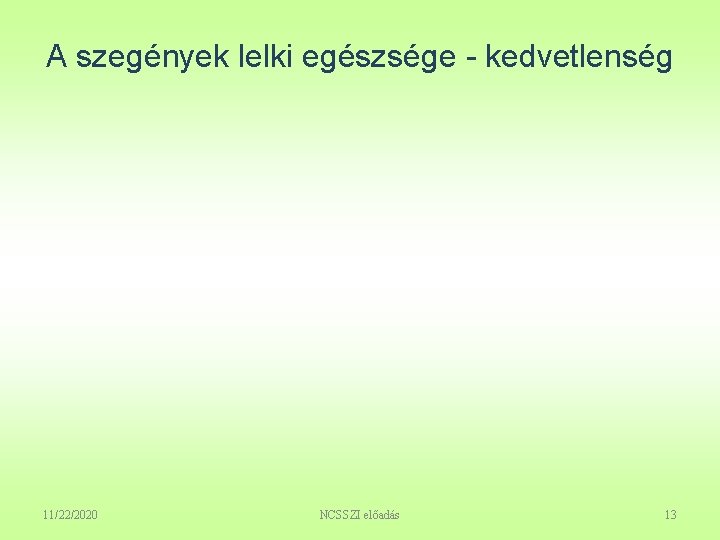 A szegények lelki egészsége - kedvetlenség 11/22/2020 NCSSZI előadás 13