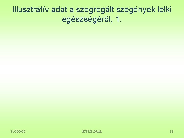 Illusztratív adat a szegregált szegények lelki egészségéről, 1. 11/22/2020 NCSSZI előadás 14