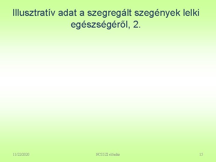 Illusztratív adat a szegregált szegények lelki egészségéről, 2. 11/22/2020 NCSSZI előadás 15