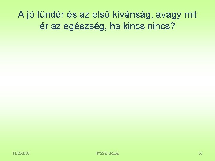A jó tündér és az első kívánság, avagy mit ér az egészség, ha kincs nincs? 11/22/2020 NCSSZI előadás 16