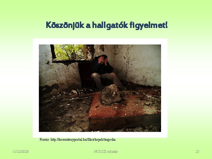 Köszönjük a hallgatók figyelmet! Forrás: http: //keresztenyportal. hu/files/kepek/tragedia. 11/22/2020 NCSSZI előadás 25