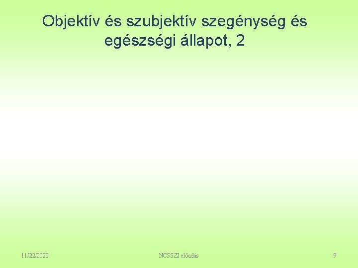 Objektív és szubjektív szegénység és egészségi állapot, 2 11/22/2020 NCSSZI előadás 9