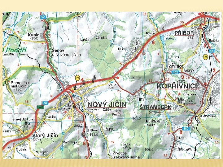 DRÁHA Příklad 6: Jak určíš dráhu automobilu na plánované trase podle autoatlasu? (Nemáš možnost připojení k internetu a musíš se spokojit pouze s tištěnou verzí. ) Zjisti, kolik kilometrů měří poznávací trasa: � 1. Muzeum Tatra v centru Kopřivnice � 2. Zřícenina hradu Starý Jičín (parkoviště u kostela).