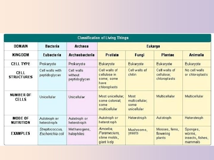 Adaptations of Eubacteria: Flagellum – long, whip like projection to assist with movement and capturing food. (Structure) Cell Wall (Two Types): ‐ function in support and protection ‐ the two types of cell walls are distinguished using a method call gram staining. 1. Peptidoglycan – made of carbohydrates and amino acids (Structure). Bacteria with this type of wall are considered gram‐positive and appear purple when gram stained. 2. Thinner cell wall (structure) outside a thicker lipid membrane. Bacteria with this type of wall are considered gram‐negative and appear pink when stained. Capsule‐is a polysaccharide layer that lies outside the cell membrane to protect cells from engulfment by eukaryotic cells. Capsules also contain water which protects the bacteria against desiccation (drying out) (Structure).
