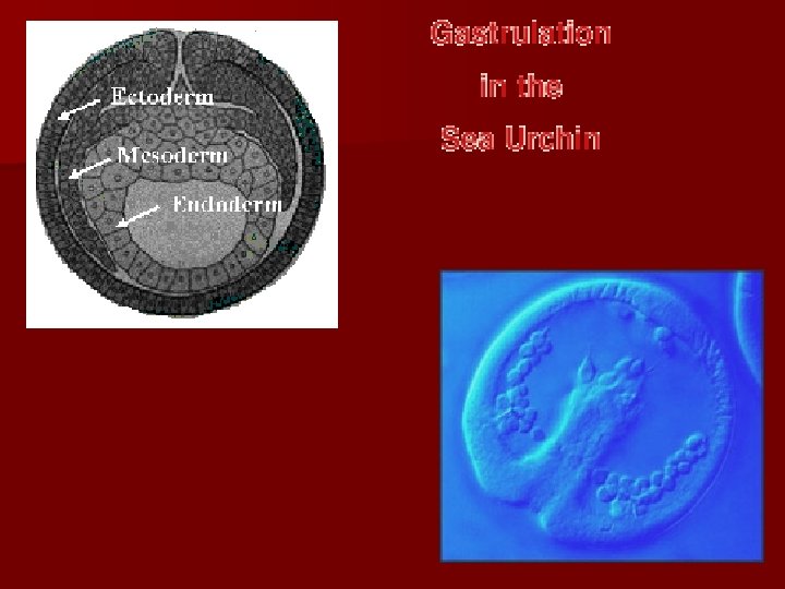 ~ Developmental Characteristics ~ n The gastrula is made up of three parts: – Ectoderm, Ectoderm a layer of cells on the outer surface of the gastrula, grows and divides developing into skin and nervous tissue. – Endoderm, Endoderm a layer of cells lining the inner surface of the gastrula, develops into the lining of the animal’s digestive tract. – Mesoderm, made up of two layers of cells lying between the ectoderm and endoderm, forms muscles, reproductive organs and circulatory vessels.