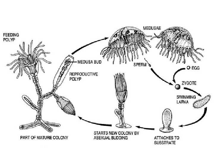 Four Important Cnidarian Classes 1. Class Hydrozoa Mostly marine Alteration of generation (polyp and medusa stages) is usually exhibited Includes hydroids, fire corals, and Portugese man-of-war