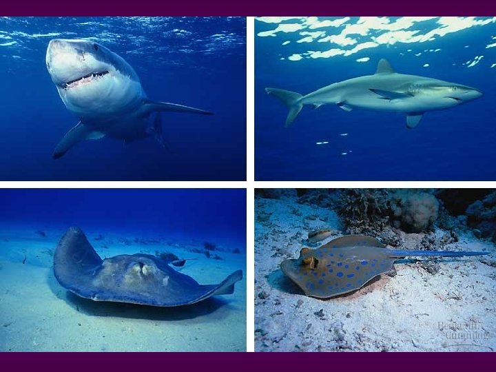 Class Chondrichthyes (Cartilaginous Fish) • well-developed fins and teeth • 2 pairs of fins, one supported by pectoral girdle, other by pelvic girdle. • entire skeleton, including skull, without any true bone, though partly calcified, especially in vertebrae • Fertilization is internal