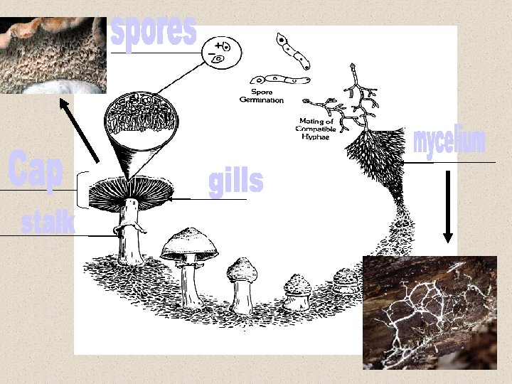 Rhizoids = root-like hyphae The zhizoids meet underground and mating occurs between hyphae of different molds (SEXUAL REPRODUCTION)