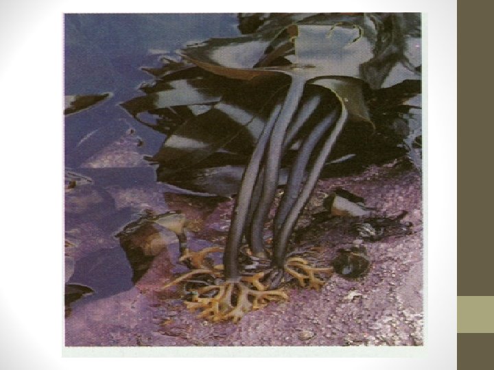 Phylum Phaeophyta • • • Brown algae Marine Seaweed and kelps Cooler areas of ocean Fucoxanthin pigment Store food as laminarin ALL multicellular Stemlike stipe Leaflike region called blade