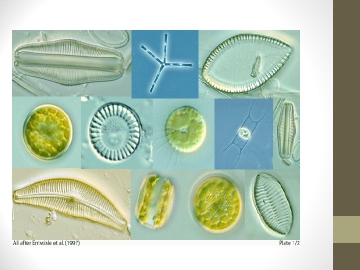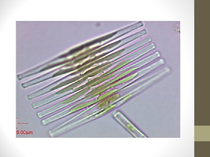Phylum Bacillariophyta • • • Diatoms (along with radiolaria) Shells fit together like a box with a lid Centric and pennate Main component of phytoplankton Diatomaceous earth