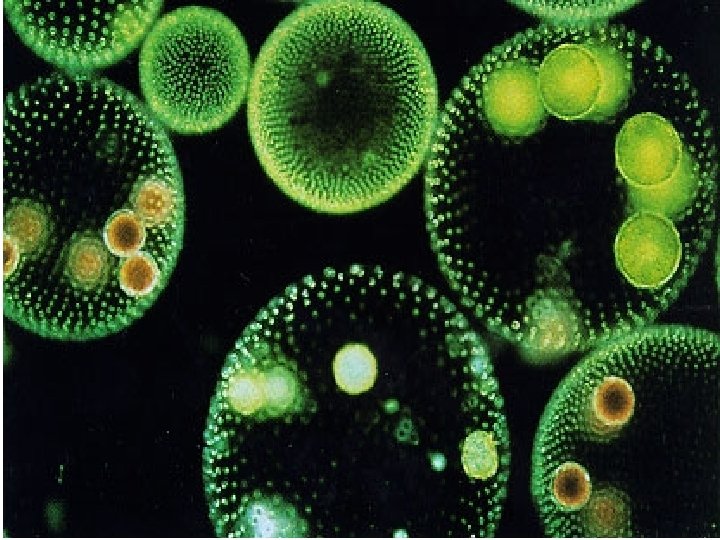 Green Algae n Most are unicellular n Some n Few form colonies are multicellular n Can live in fresh and salt water and on land in damp places. n Very closely related to green plants.