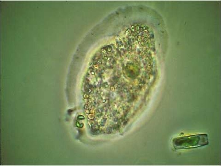 1. Euglenoids n Green n Unicellular n Live in fresh water n Autotrophs, but can be heterotrophs under certain conditions. n Flagella n Eyespot: sensitive to light. n Chloroplasts n Pellicle