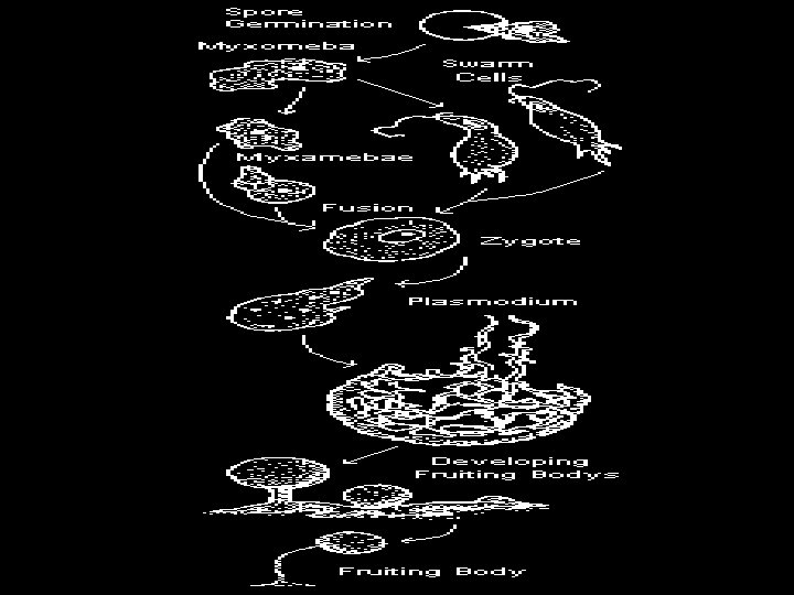 Life Cycle of Slime Molds Spore Sm. Ameba-like cell Lg. cell w/ many nuclei Spores produced OR Spore Sm. Ameba-like cell Mass of cells Spores produced