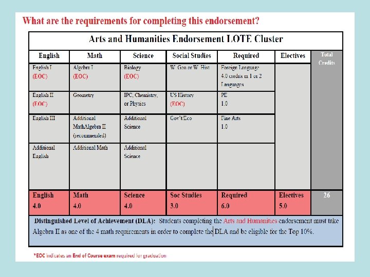 English Graduation Requirements English I (EOC) English III Additional English Recommendations: 1. Choose a challenging level of rigor that prepares you for your career goals. 2. The 4 th English should be a bridge between high school and postsecondary goals. Humble ISD recommends taking a college-level course at least by senior year for those students planning on going to college.