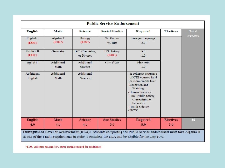 ? What is an endorsement? u An endorsement is a broad area of study u It’s a bit like a college major