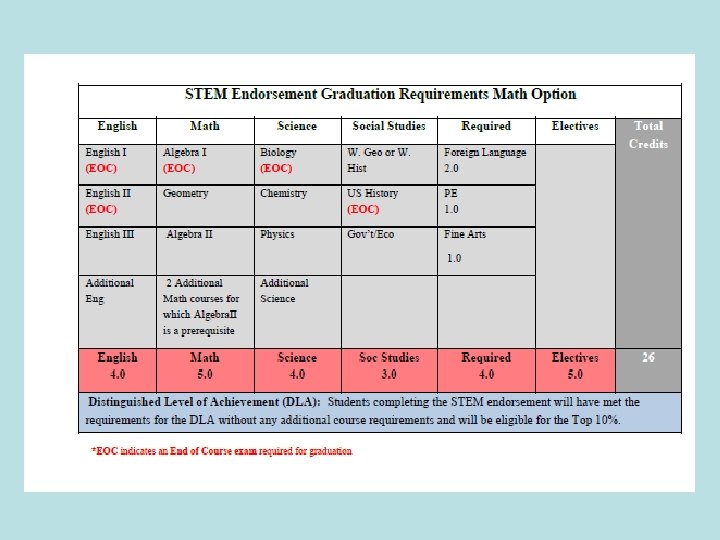 Math Graduation Requirements Algebra I (EOC) Geometry Algebra 2 and 1 additional credit Recommendations: 1. Choose challenging math courses that will prepare you for your career goals. 2. The 4 th math course should be a bridge between high school and post-secondary goals. Humble ISD recommends taking a college-level course at least by senior year for those students planning on going to college.