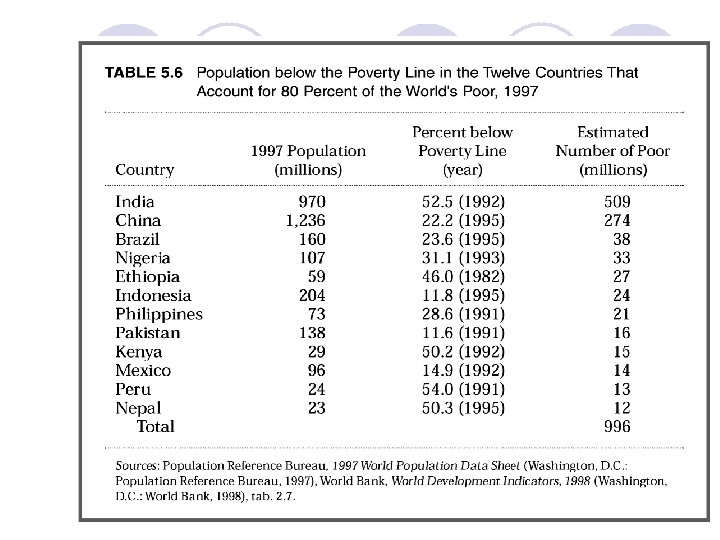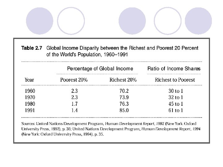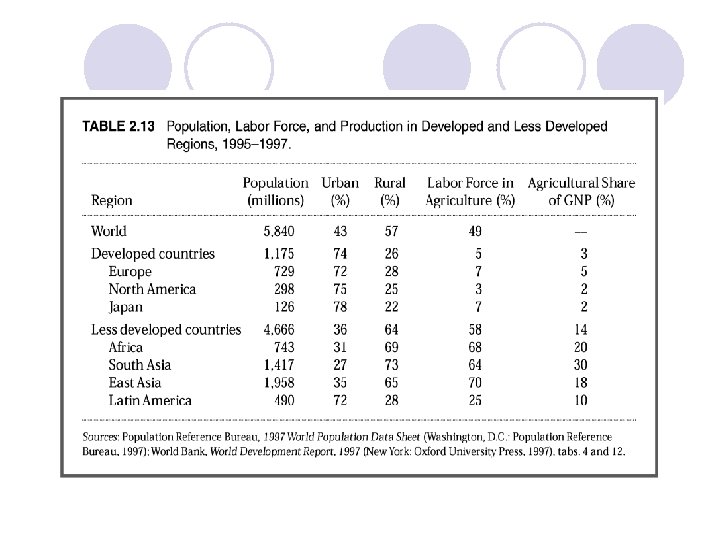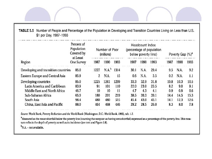 Đặc điểm chung của các nước đang phát triển l Mức sống thấp l Tỷ lệ tích lũy thấp l Trình độ kỹ thuật của sản xuất thấp l Năng suất lao động thấp l Tỷ lệ tăng dân số và số người sống phụ thuộc cao