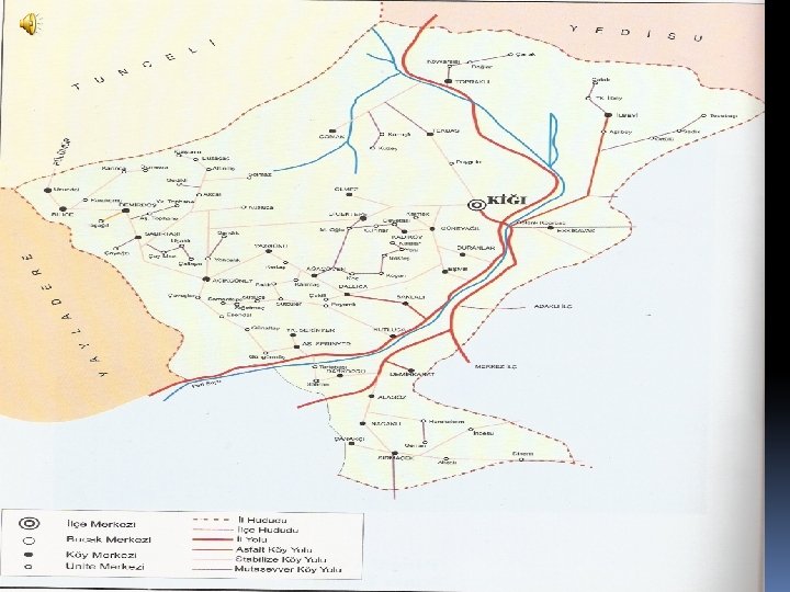 KİĞI’NIN COĞRAFİ KONUMU ***Kiğı, tarihi m. ö. 3000’li yıllara dayanan bir yerleşim merkezidir. ***Doğusunda Bingöl, batısında Tunceli, kuzeyinde Erzurum ve Erzincan, güneyinde Elazığ ve Diyarbakır illeri bulunmaktadır.