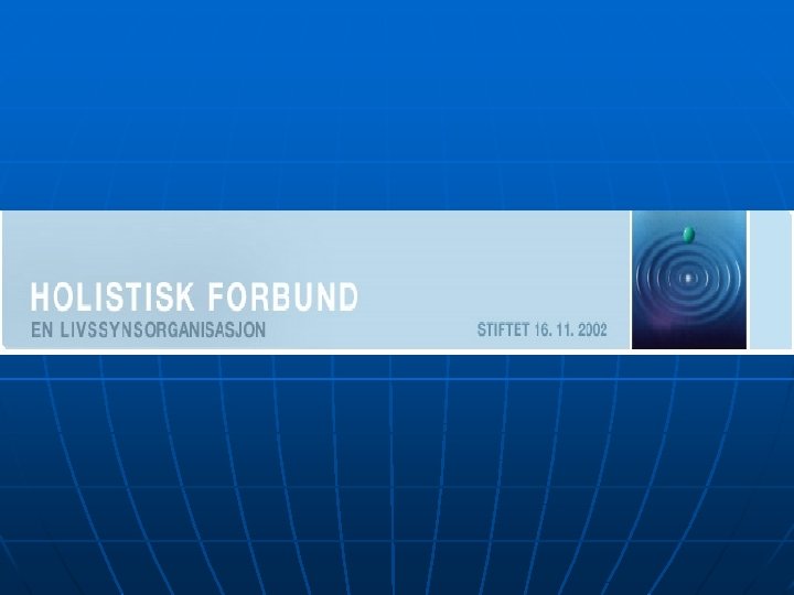 Holistisk Forbund vil arbeide med: n n n n n Opplysning om og utvikling av holistisk livssyn og praksis. Å fremme en global etikk med utgangspunkt i FNs menneskerettighetserklæringer og The Earth Charter Å søke å løse konflikter gjennom dialog. Brobygging mellom spiritualitet og vitenskap. Brobygging mellom ulike livssyn og religioner Å fremme alternative behandlingsformer og selvutvikling. Den enkeltes rett og mulighet til fullverdige seremonier og ritualer ved viktige overgangsfaser i livet, i tråd med eget livssyn og verdier. Å fremme mangfold, toleranse, kjærlighet og glede Holistisk Forbund er partipolitisk uavhengig. »