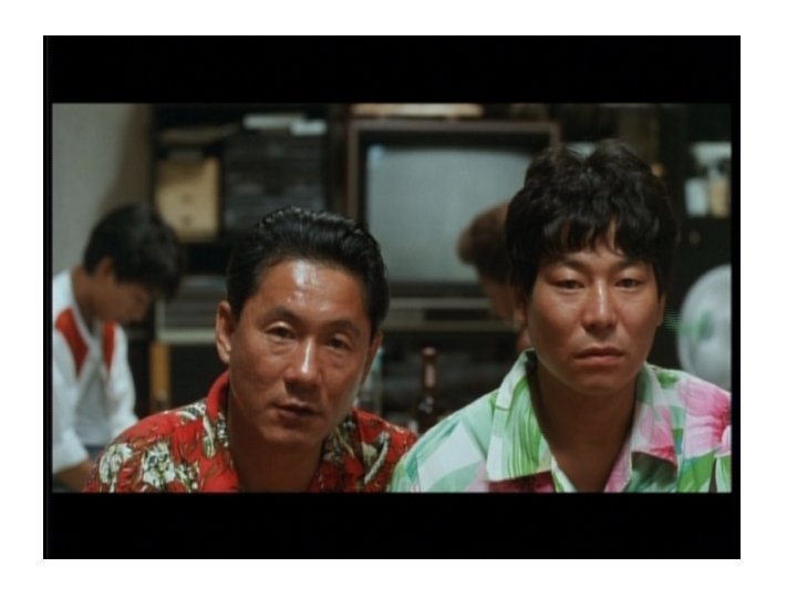 Kitano’s Mannerist Style; Mise-en-scène • Frontal shots of Yakuza, and Uehara and Kazuo • Boiling Point