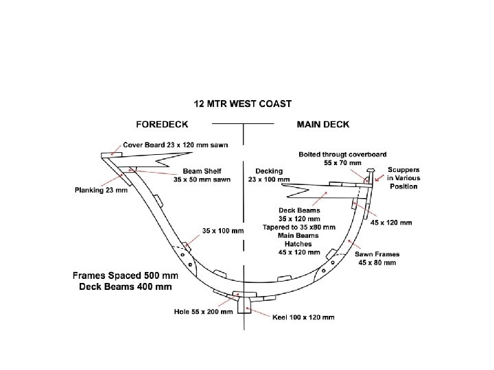 • Keel and other components • 4. 5. 1 For vessels up to 7 m LOA the keel should preferably be in one length. For larger vessels • the keel can be joined with a scarph of length 5 x keel height with end notches of depth 0. 2 x keel height. The scarph should be bolted together.