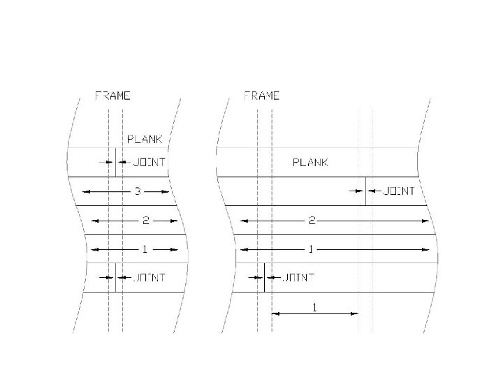 Beam and bilge stringers should run continuously from stem to transom and, where possible, be of a single length of timber; where joints are required, the illustration below shows the requirements. It is good practice for the bilge stringer to be bolted in place