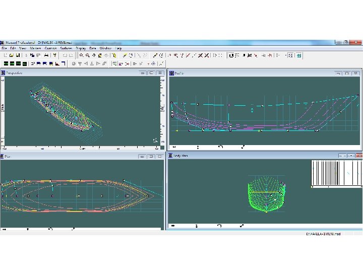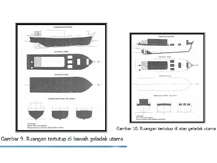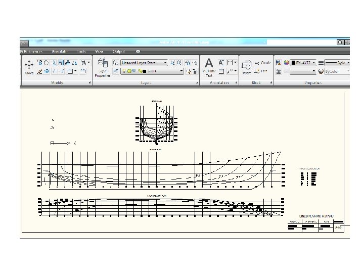 Menggambar rencana garis (lines plan) • Body plan • Half breadth plan • Sheer plan