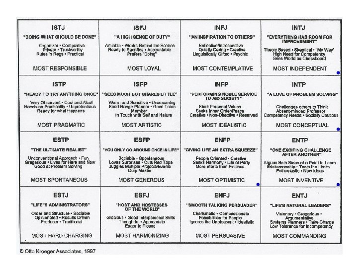 III. MYER BRIGGS TYPE INDICATOR (MBTI) Tes kepribadian inventori yang mudah digunakan dan banyak dipakai MBTI dikembangkan oleh Katharine Cook Briggs dan putrinya yang bernama Isabel Briggs Myers berdasarkan teori kepribadian dari Carl Gustav Jung.